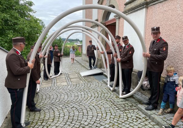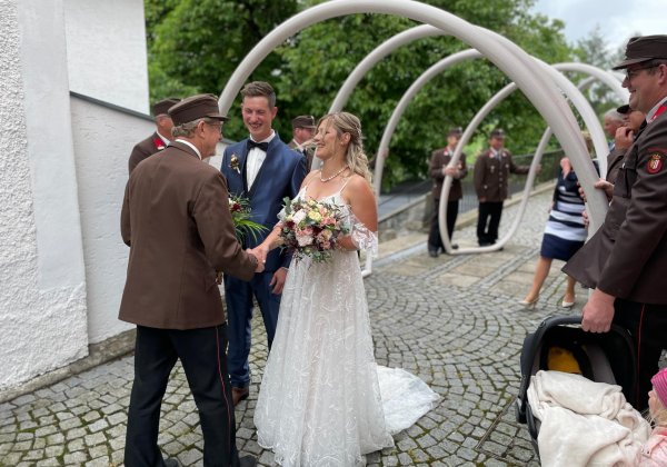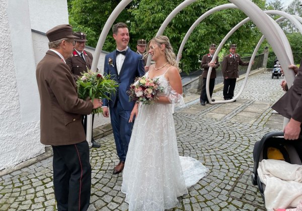 Die Feuerwehrkameraden überbrachten dem glücklichen Brautpaar die allerbesten Hochzeitswünsche.