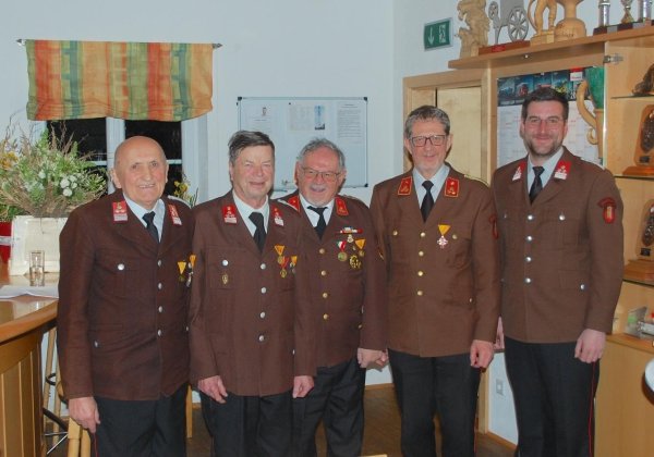 Der neu gewählte Kommandant Georg Nimmervoll konnte sich dann bei einem Foto mit vier seiner Kommandantenvorgänger einreihen.