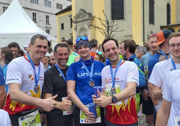 Mit einer stattlichen Abordnung von 16 Kameradinnen und Kameraden waren wir auch heuer wieder beim Linz Marathon vertreten. Der Startschuss für den Viertelmarathon fiel um 8:30 Uhr auf der Autobahnbrücke, unsere beiden Halbmarathon-Teilnehmer Emanuel Reisinger und Bernhard Hartl griffen um 9:30 Uhr ins Geschehen ein. Bei perfektem Laufwetter mit angenehmen Temperaturen und wenig Wind genossen wir die grandiose Stimmung, für die tausende Zuschauerinnen und Zuschauer entlang der Strecke sorgten.
