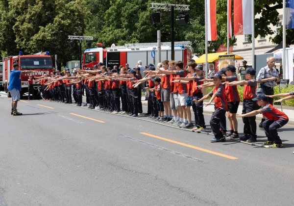Am 27. Juni fand der Ehrenamtstag in Linz rund um das Landhaus statt. Ein Tag, den unsere Jugend nie wieder vergessen wird. Gemeinsam mit Franz "The Austrian Rock" Müllner – dem stärksten Mann Österreichs – haben 52 Jugendliche der Bad Leonfeldner Feuerwehren einen spektakulären Weltrekord aufgestellt, 18 Jugendliche waren dabei von unserer Wehr. Ziel war es, zwei Löschfahrzeuge mit einem Gesamtgewicht von 30 Tonnen über eine Strecke von 50 Metern zu ziehen. Mithilfe der Feuerwehrjugend der Bad Leonfeldner Feuerwehren wurde dies geschafft und ein Weltrekord aufgestellt.