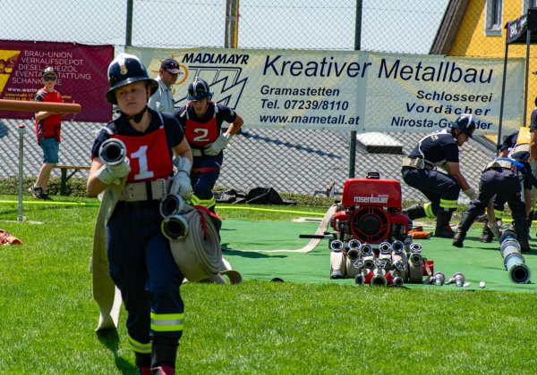 Beim Nassbewerb in Gramastetten feierte unsere Feuerwehr einen starken Doppelsieg: Gruppe 1 setzte sich mit rund 0,4 Sekunden Vorsprung knapp vor Gruppe 2 durch und holte den Sieg in Bronze.