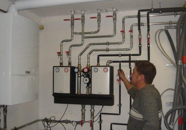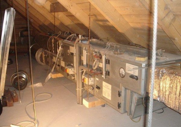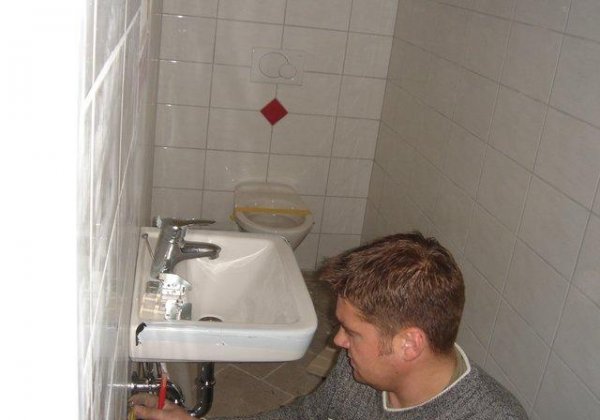 Im Keller wird die neue Gastherme von der Firma Haiböck durch Hofer Günther installiert. Gleichzeitig werden ein Stockwerk höher die Sanitärräume komplettiert und Teile der Decke verkleidet.